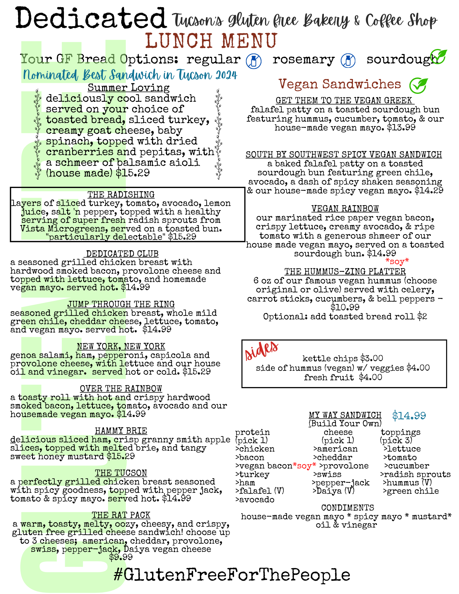 Dedicated is a family- owned and operated bakery & cafe in east-central Tucson. We know what it means to have a diagnosis change your whole life - and we believe that being gluten free shouldn't mean that your food tastes weird or is ‘good for gluten free food’. We created this bakery to serve the community and are proud to share our delicious baked treats with our fellow GF'ers!